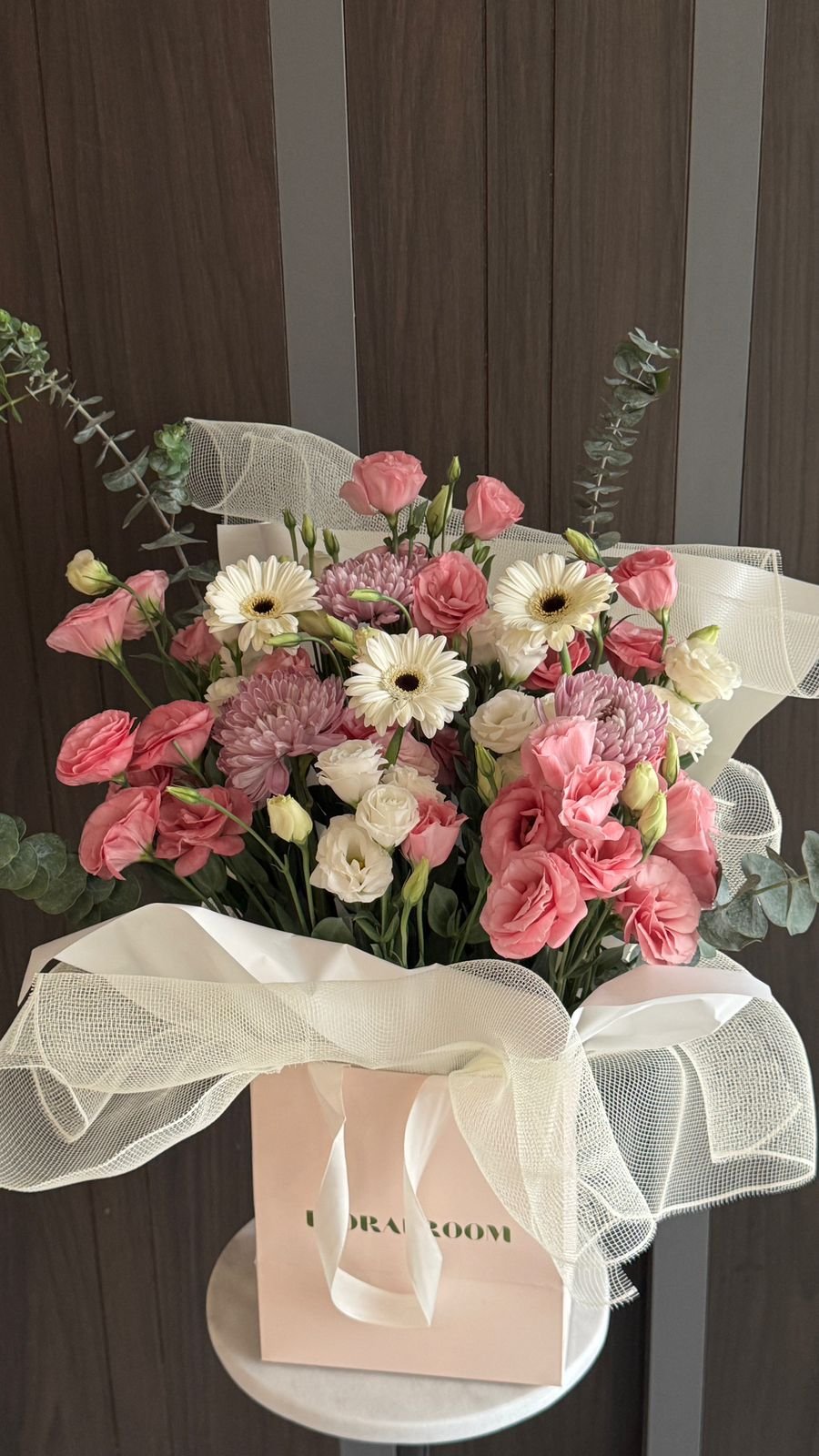 A graceful blend of soft pink and white blooms, carefully arranged to create a timeless and elegant bouquet. Perfect for adding a touch of warmth and charm to any occasion, whether it’s a celebration, a gift, or simply to brighten your space.