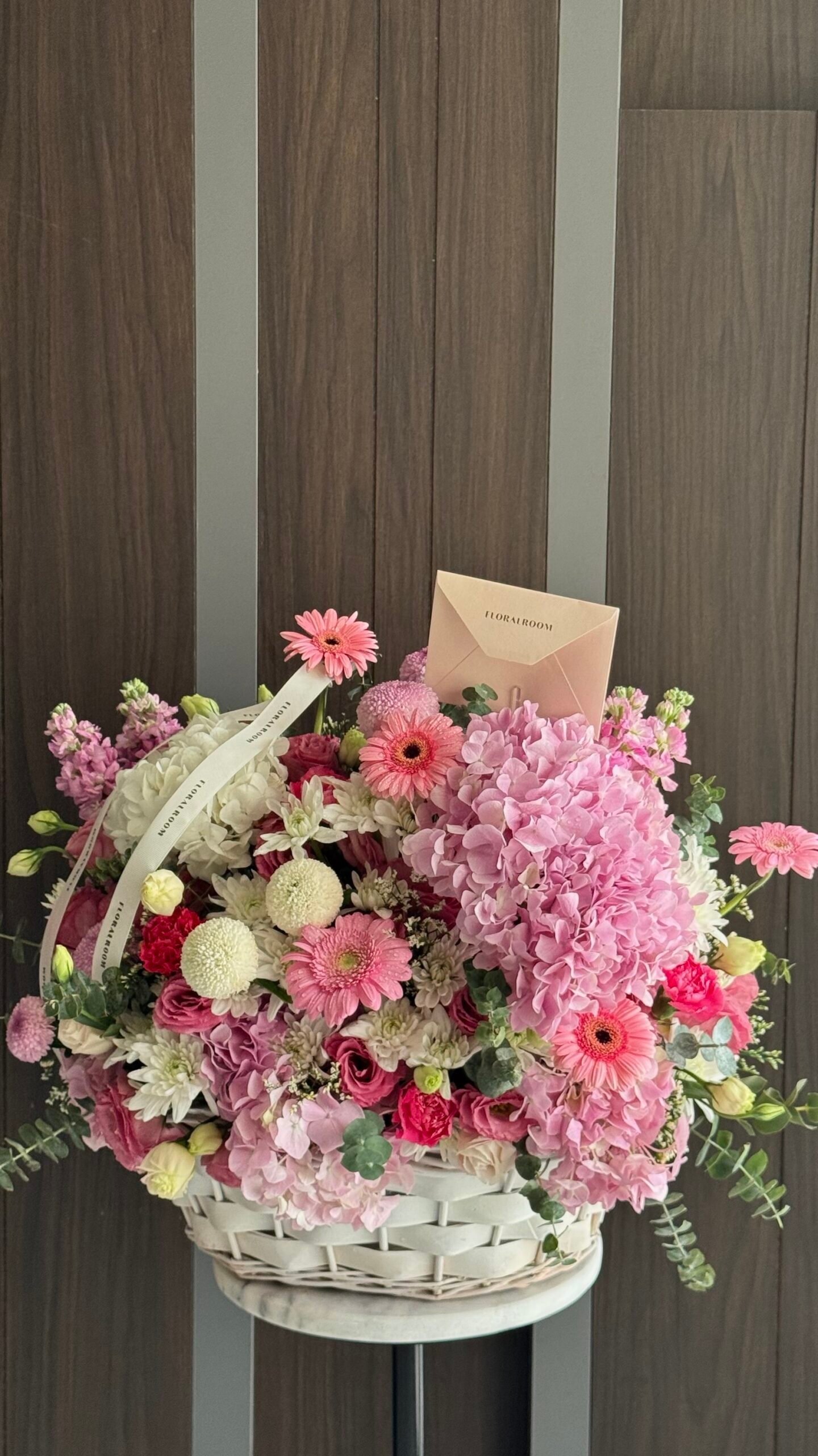 We will try our best to replicate the arrangement in the picture. However, due to seasonal availability and shipment conditions, some flowers may vary slightly.